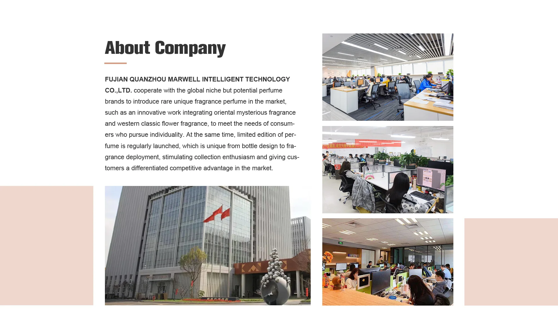 Ana ürünler:Markalar için özelleştirilmiş koku çözümleri (OEM/ODM), doğal ve Vegan parfüm (ISO22716 & ECOCERT tarafından onaylanmış), lüks parfüm, EAU DE Parfum,Parfum